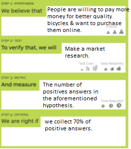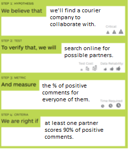The next step, is the classification of the assumptions based on the risk they entail for the firm and then follows the conception of various tests to measure their validity. At this point, a lot of attention is required on what the firm wishes to count but also on the criteria that are set to test the validity of the suppositions. It is worth mentioning that the methodology is interrelated with the creation of an MVP and the trial of the production process.